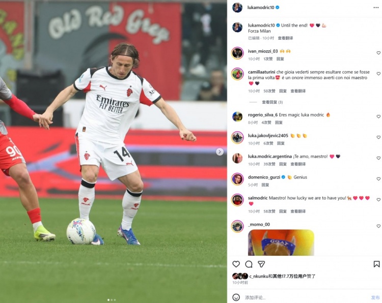 500万彩票网-绝杀取胜,莫德里奇社媒晒照:我们坚持到最后一刻!米兰加油! xiaoqiao 2026-03-05 西甲 23 0 3月2日讯 在本轮意甲,AC米兰2-0击败克雷莫内塞,球队凭借最后时刻两粒进球取胜。本场比赛40岁莫德里奇再次打满全场,赛后他也在个人社媒晒照,配文写道:“我们坚持到最后一刻!加油米兰!”
