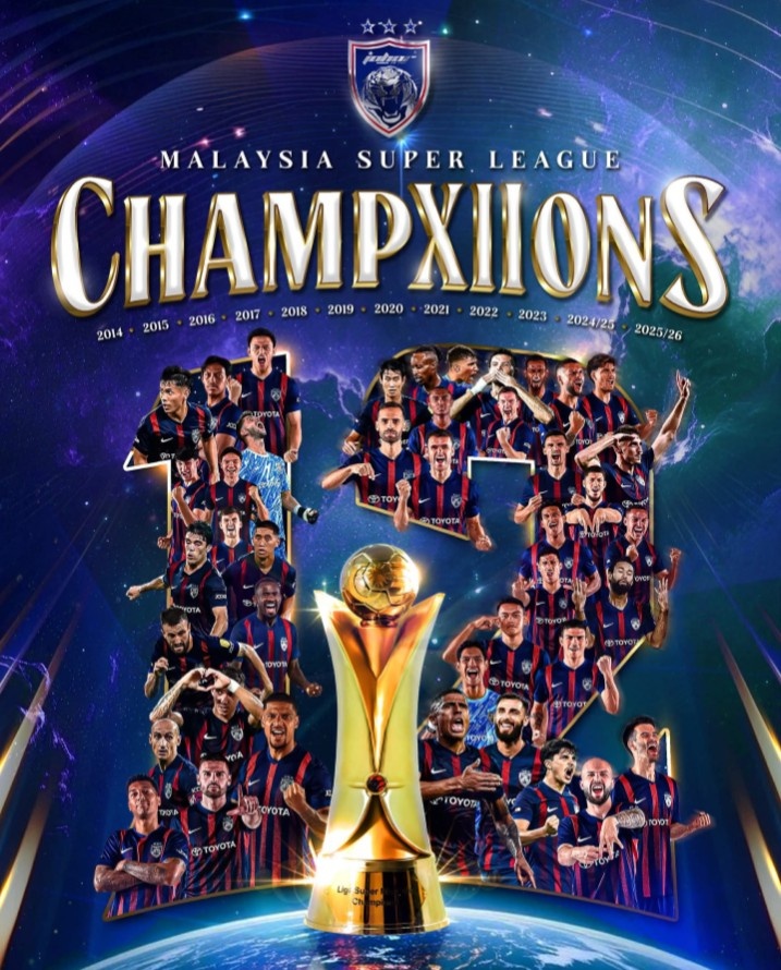 500彩票-霸主!柔佛新山实现马来超12连冠,赛季19战全胜进86球丢7球